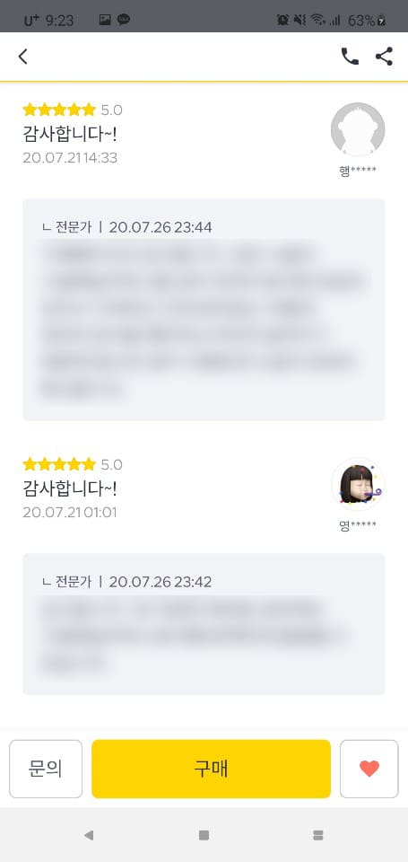 보안상의 문제로 블러 처리를 했지만 내용은 크게 중요하지 않습니다. 바로 후기에 대한 반응입니다. 모든 사람이 쇼핑할 때 그렇듯 리뷰, 후기를 많이 봅니다. 하지만 아무런 혜택 없이 정성스럽게 리뷰를 작성하는 사람은 거의 없습니다. 특히나 크몽과 탈잉, 숨고 같은 재능 플랫폼에서는 더욱 없죠.