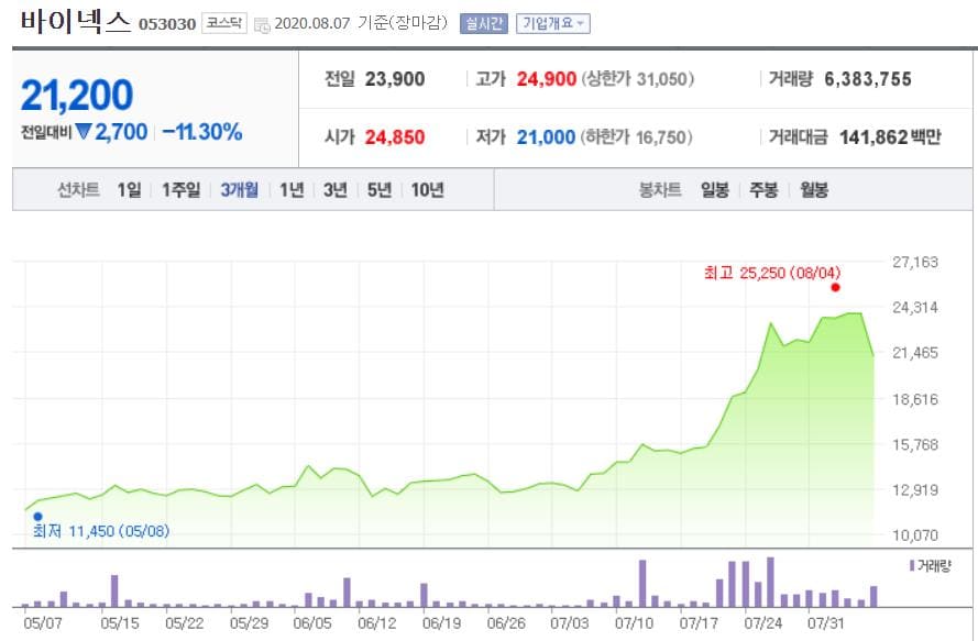 때문에 현재 바이넥스 주가인 2만 천원대가 솔깃하는 주가인 것 같습니다.