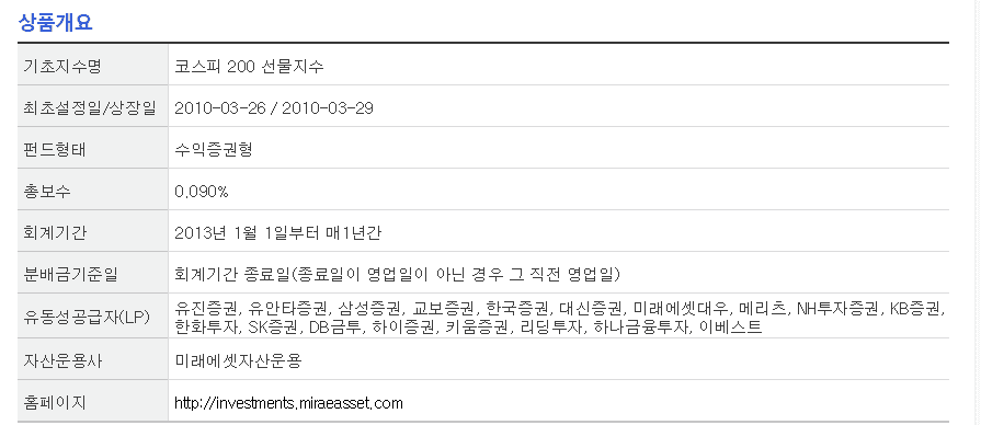 반면에 타이거(Tiger) 인버스는 '미래에셋자산운용'인데 보수액이 0.09%밖에 되지 않습니다. 약 7배 차이가 납니다. tiger도 코덱스 못지않게 거래량이 많은 종목인데 만약 수수료를 절감하려면 이 종목도 매우 좋습니다. 만약 종목에 대해 자세히 알고 싶다면 아래 링크에서 확인하시길 바랍니다.