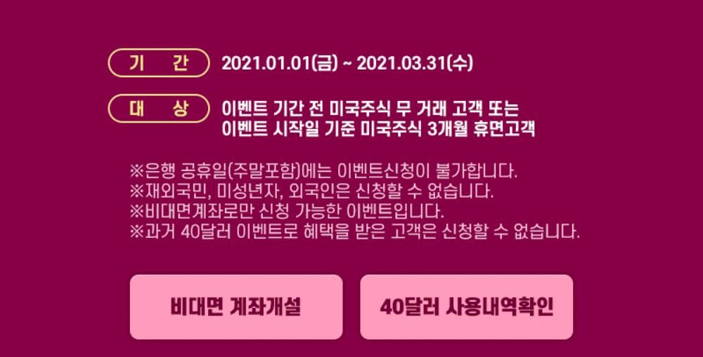 하지만 40달러를 받고 사용하지 않으면 인출이 제한되는 등 여러가지 가이드가 있습니다. 혹시나 궁금할 것 같은 사항을 모아놨으니 참고하시길 바랍니다.