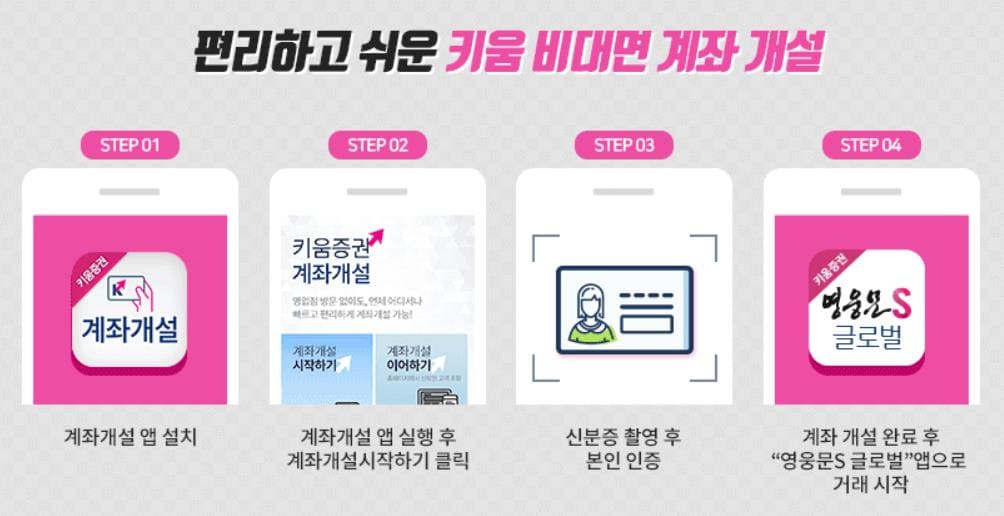 어플에서도 쉽게 등록 혹은 신청할 수 있습니다. 만약 발급 도중에 신분증 확인이 제대로 안 된다는 에러 메시지를 받게 되면 계속 기다려 봤자 해결이 되지 않습니다. 그럴 때에는 키움증권 영웅문 홈페이지에 들어가 문의를 남기거나 고객센터에 전화해 다시 한번 신분증 촬영을 해야 하니 참고하시길 바랍니다.