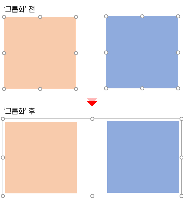 그런 다음 그룹을 누르면 한글 개체 묶기처럼 합쳐지게 됩니다.