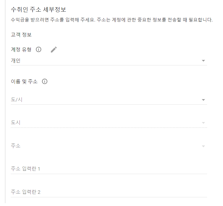 그럼 이제 개인정보(이름, 주소, 전화번호)을 입력하는 란이 나오게 됩니다.