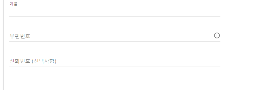 그럼 이제 개인정보(이름, 주소, 전화번호)을 입력하는 란이 나오게 됩니다.