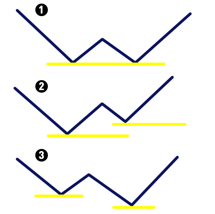 1번과 같이 처음 다져진 바닥과 비슷한 부근에 두 번째 바닥이 생기는 것과 2번처럼 첫번째 바닥보다 위쪽에 새로운 포지션이 생기는 거죠.