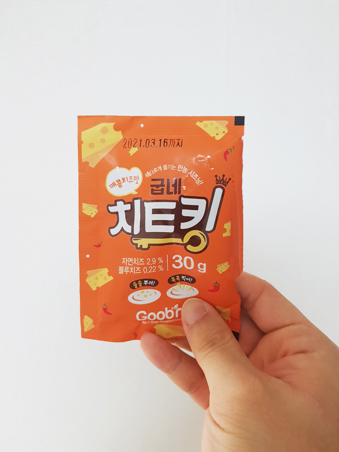 굽네 치트킹은 2가지 맛이 있는데요. '매콤 치즈, 콘수프'입니다. 제 개인적으로는 굽네치킨이 조금 느끼해서 콜라 1.5L에 매콤 치즈 맛 치트킹 하나를 추가했는데요. 참고로 치트킹 가격은 1,000원입니다.