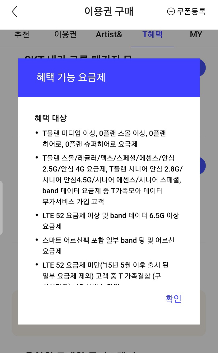 두 번째 방법은 월 1번씩 skt가 제공하는 쿠폰을 받는 것입니다.