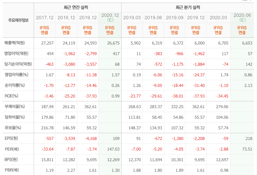 2018년, 2019년 2년 연속 적자를 기록해 올해 신용등급이 2단계 하락한 BBB+가 되었습니다.