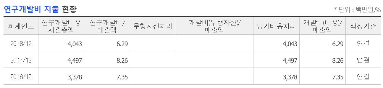 연구개발비 비중이 낮아지긴 했지만 업계 평균보다 높은 수치이기에 지속적으로 투자에 힘쓰다는 것을 알 수 있습니다.